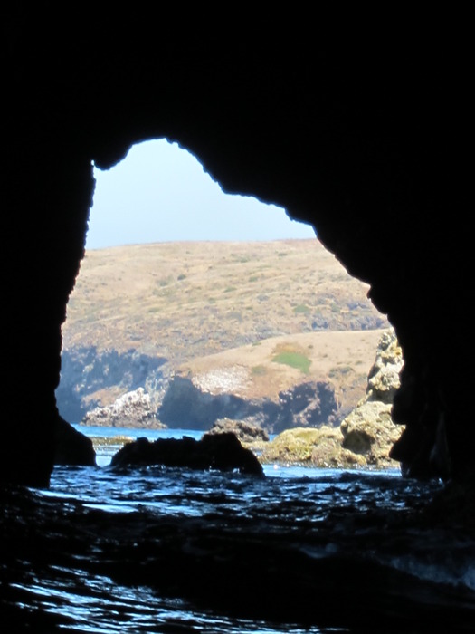 View through the "fun" cave. This is harder than it looks, by the way. You're sitting in an awkward position to start with, on a small, moving platform, which is subject to waves, currents and other boats...trying to keep your camera dry and your paddle in the boat and you in your seat...Then trying to point this little black box at a spot that was in front of you when you got the box out, but is now drifting off your left side...the light is low, it's hard to even see what's in the shot. Whew!