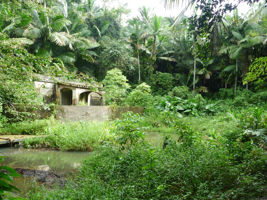 An old bath house from the 1930s next to what used to be a children's swimming pool. Now more appropriate as the set for a horror movie.
