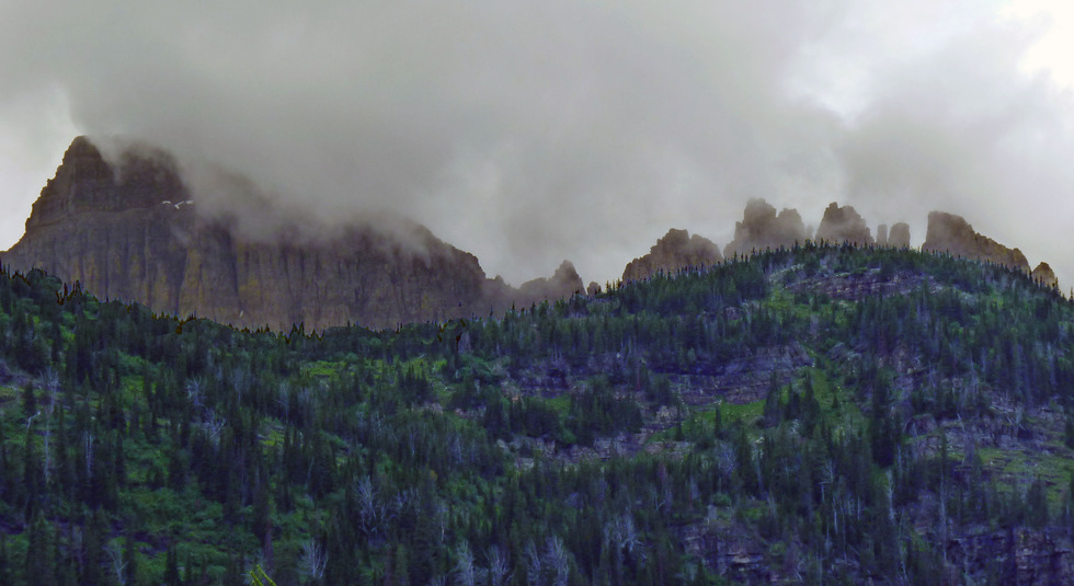 yep, the storm is brewing. Fortunately when it hit, we were driving away from Many Glacier and then eating a wonderful supper at the Cattle Baron's Supperclub in Babb. If you've not eaten here, it's a treat both the food and decor. Most of the help are from the Blackfeet Nation which borders the Park.