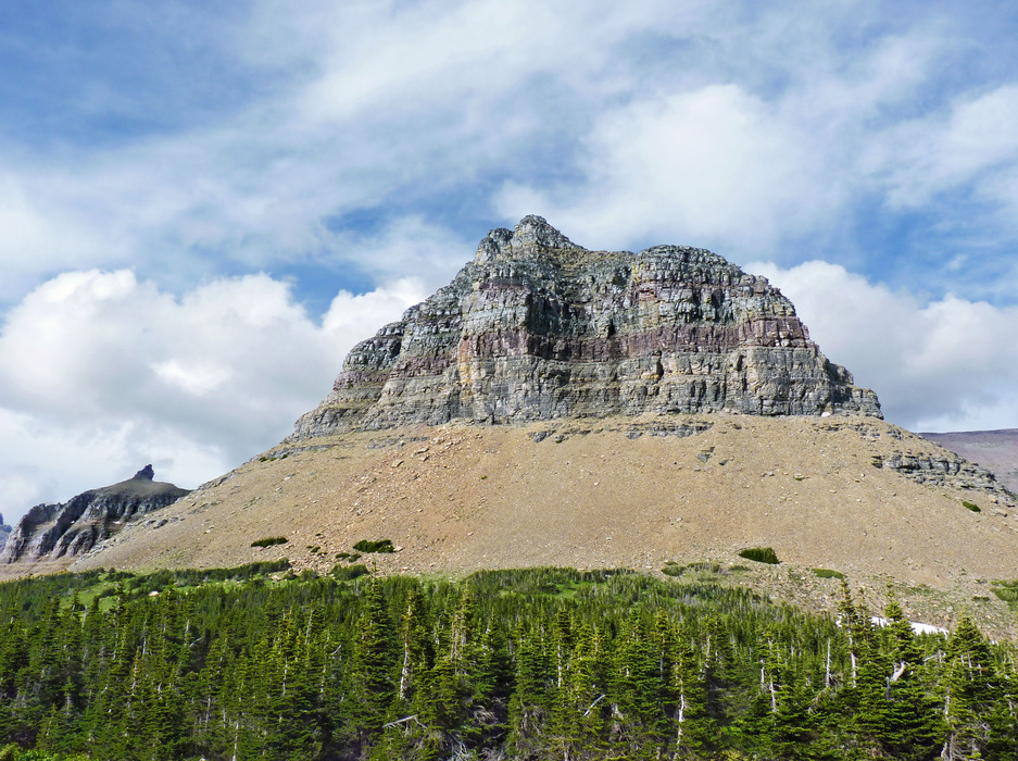 We caught the 3rd shuttle back to Logan Pass where our car was. We headed back to the start of the Highline Trail in pursuit of Mountain Goats. This is looking north at what I think is Piegan Mtn and of course Bishop's Cap to the left.