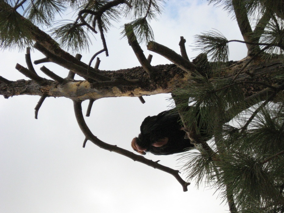 A condor sitting in a tree near the top. It's tag number is 31, though not visible. On Saturday at the Grand Canyon, the park Newspaper had a picture of a condor in an article about them. Wouldn't you know it, it was condor #31. He gets around, and is semi famous. I should feel honored to have had a celebrity sighting on the hike.