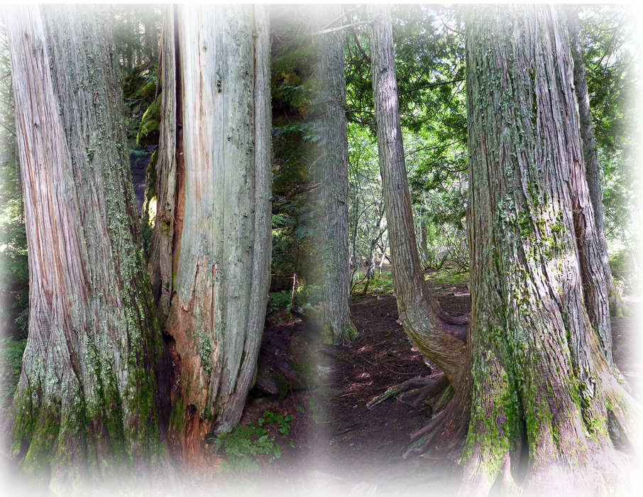 Like most, I find double trunked trees interesting. Here are two double-trunked Western Red Cedars.