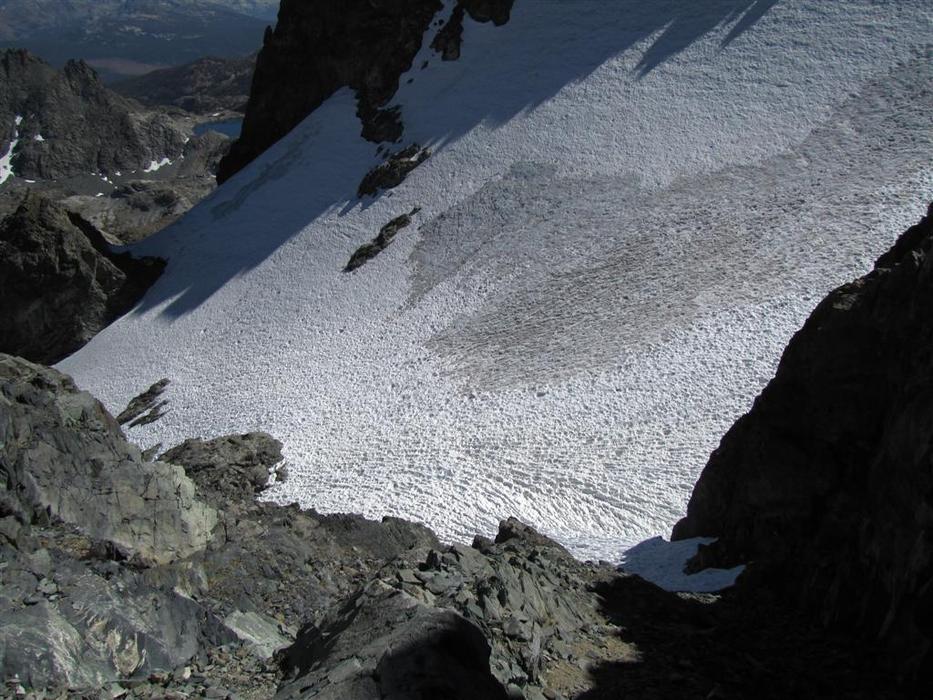 Back down, not to excited about the shadows on what I thought would be warm snow going down
