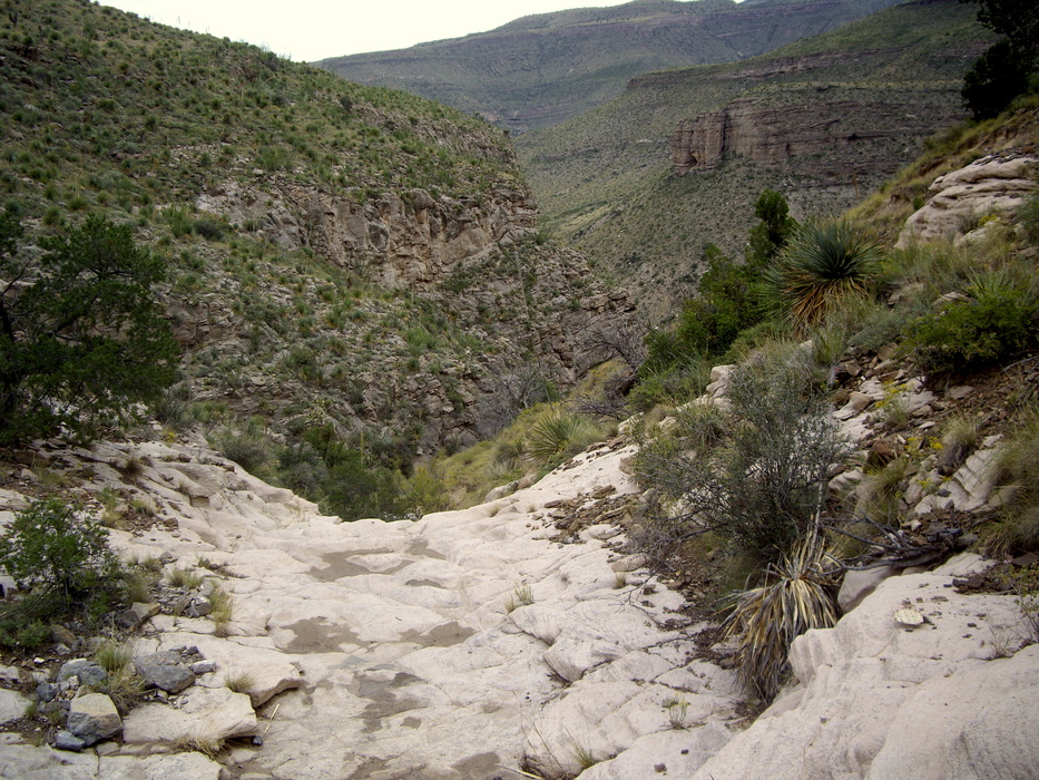 getting above the last falls... glancing back down canyon