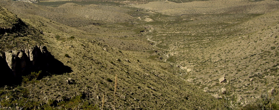 looking down at the bottom of Beeman... rocks on left are above the waterfall