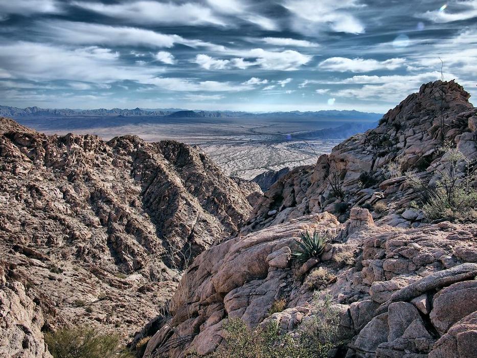 Dark mountain Tordillero peak in distance across Lechuguilla plain