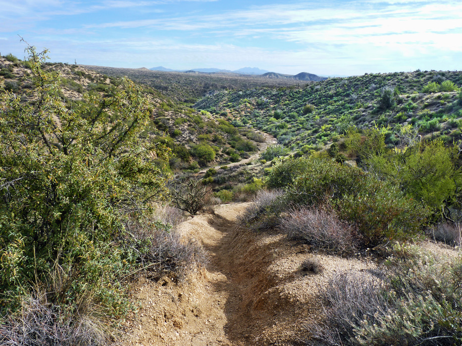 This is a view of the trail as it comes down into the wash which you will take until you get to the intersection with Camp Creek.