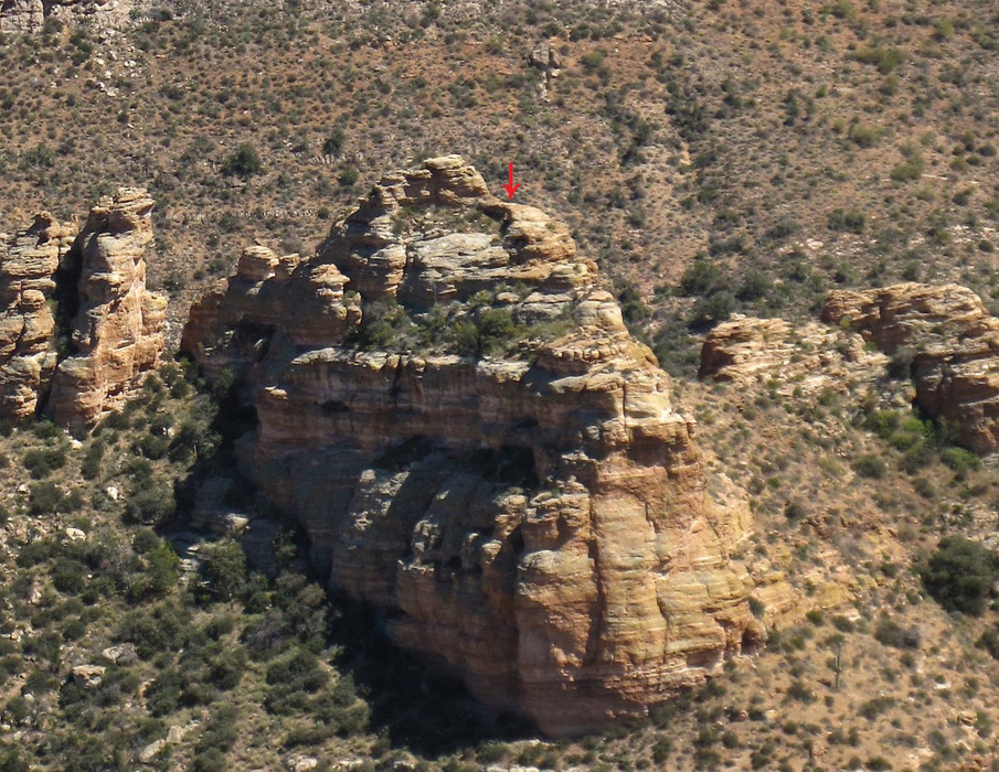 Red arrow denotes actual location of "Tower Arch" (This pic for reference is from my April'09 Wood Cyn- Upper Rim hike & also ref pic
