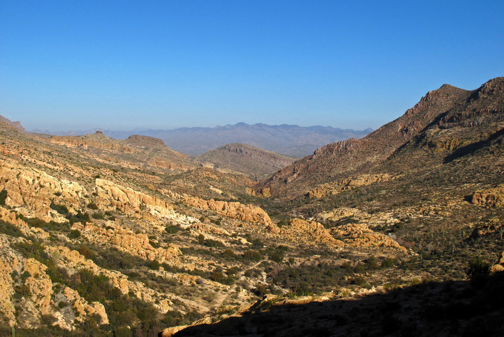 We first did an "exploratory" hike up this Tower Arch Butte front side and then hiked around the north side to the upper back side to reach Tower Arch (Please note that posted default GPS Track for this hike does not include this "exploratory" hike segment); Pic views north up Wood Canyon Rd;