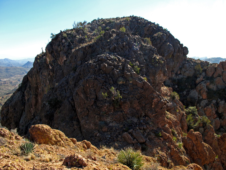 From upper saddle, rock scramble UP to false summit for short ridge hike to summit Peak 4054;
