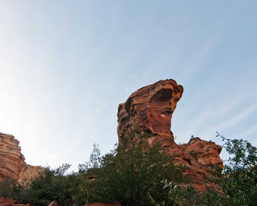The fork in the trail is here, at a large rockfall where part of this cliff came crashing down one winter. The trail to the left goes up the scree and follows the base of the cliffs to the end of this canyon.