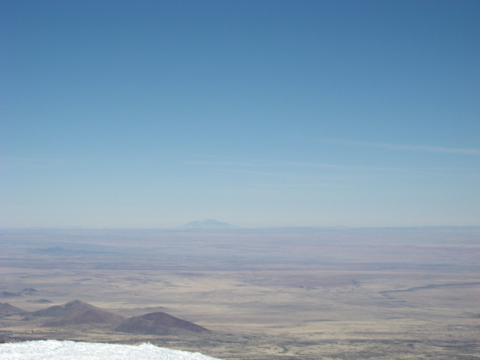 If you look at this image at a lower angle, you might be able to scan west from Navajo Mt and see a small white blotch that is "Hillers" Peak and is 183 miles away up Utah. 1/20