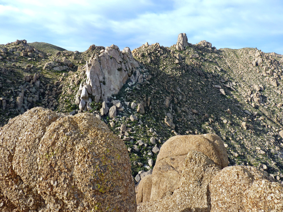 All kinds of boulders and rock up here. Different textures too. I was intrigued once again by the big slab of rock. Tom's Thumb to the right. Once again, John and I were wondering how the trail was going to get us over there from here.