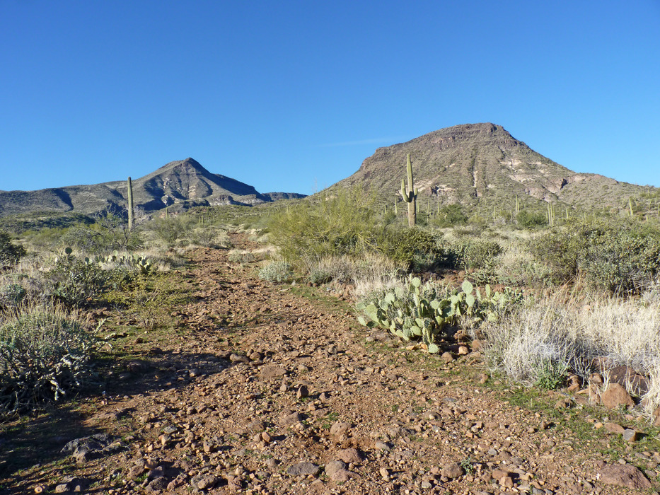 Here I am looking NNW up the trail that continues on with the Spur Cross Loop where it winds you around in front of Sugarloaf Mtn, past two springs and down to the corral, over the Creek and back to the Spur Cross TH. The mtn on the left is Black Mesa.