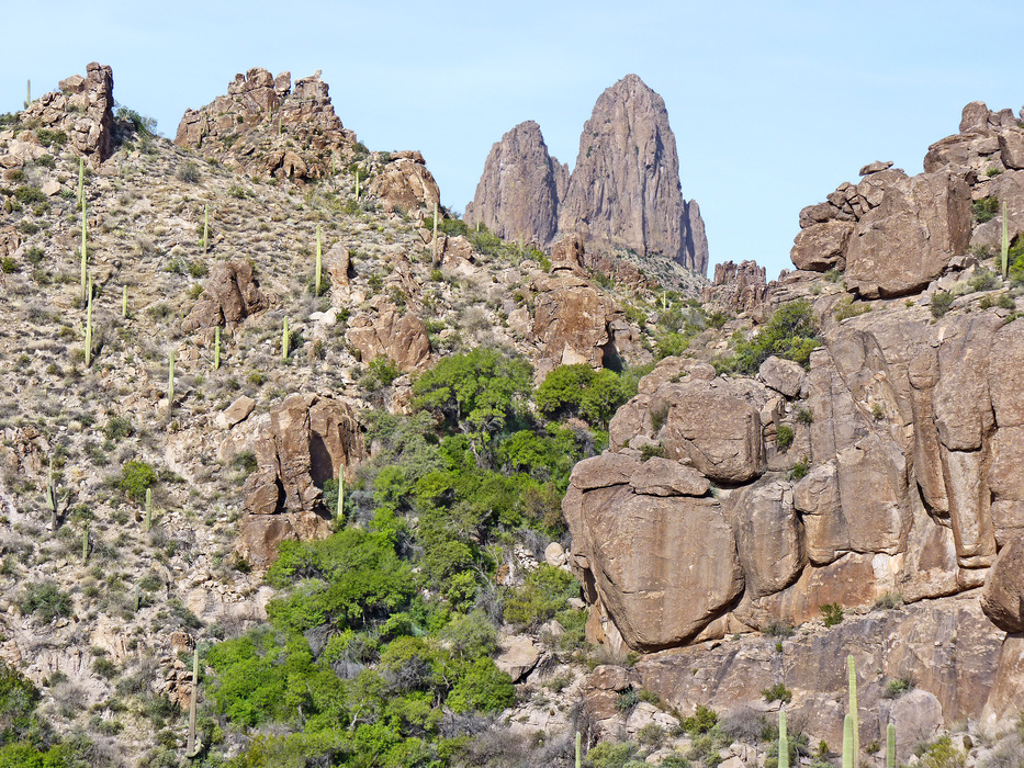 Though Weavers Needle seems the focus of this shot, what caught my eye were all of these trees up on the mountain side. Makes one think there may be some sort of spring there judging by the size of some of those trees. We are still on the Bluff Springs Trail.