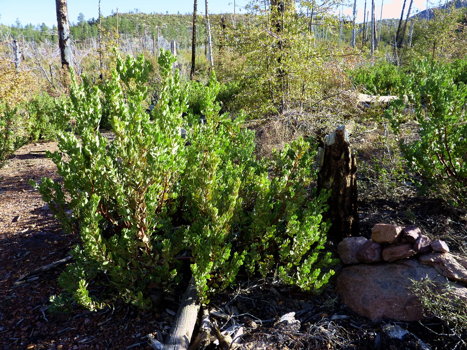 trail on left.. sign and cairn sporting the new "manzanita mustache" look.