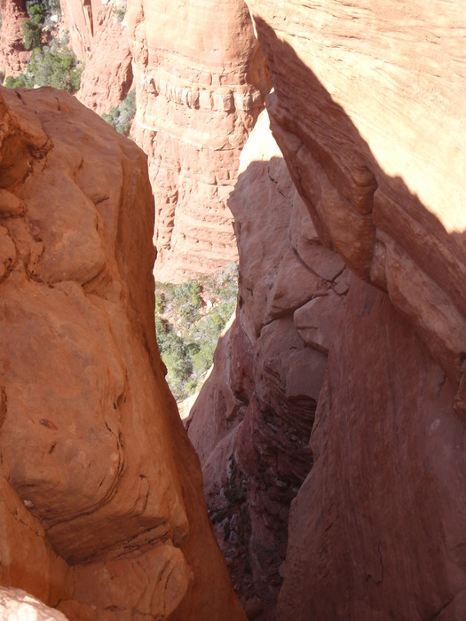 Belaying from in between spires. Taking pictures helps me to feel okay looking down.