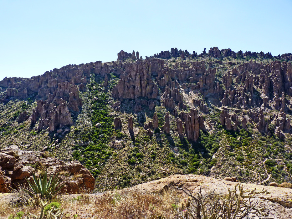 It's hard to believe we were just over there a couple hours ago. You can see where the trail to the north goes from where we had our lunch (between the hoodoos). One would think there may be some sort of spring in that green belt area running from the top of the canyon.