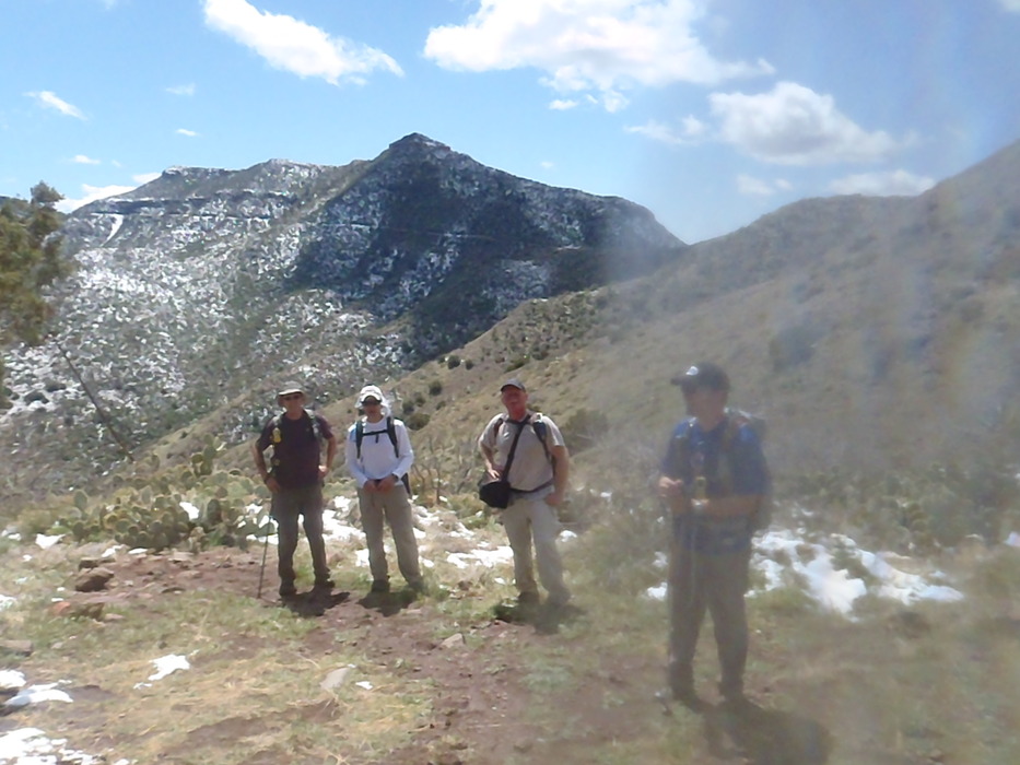 4 virgins on the way out - note how much LESS snow! Lens is still fogged up