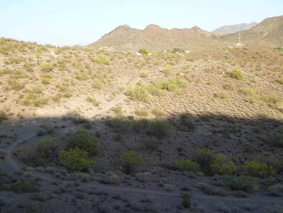 If you are doing the loop clockwise, in the distance is the left split from Trail 100. Then bottom left the curve south back to the trailhead.