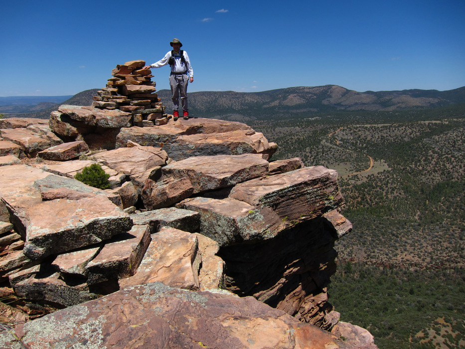 Summit at 5932 feet; We could not find a "benchmark or a summit register"; Views NE;