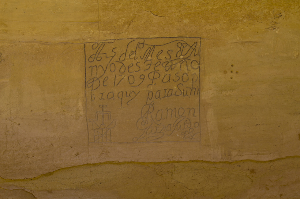 Circa 1709 - "On the 25th of the month of June of this year of 1709, Ramon Garcia Jurado passed through here on the way to Zuni". This inscription is an example of some early attempts at preservation work. Early Park Rangers used graphite (#2 pencils) to high-light the inscriptions. This practice was stopped in the 1930's...