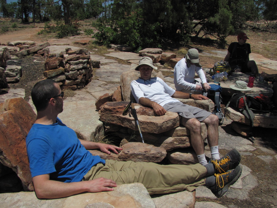 John and Chas try out the furniture.