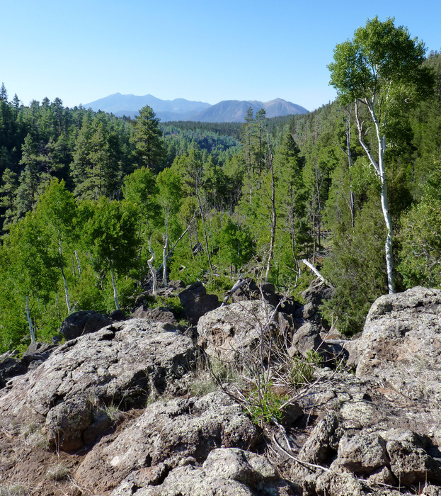 We were fascinated by this rock slide and loved the aspens along with the view toward the San Francisco Peaks.