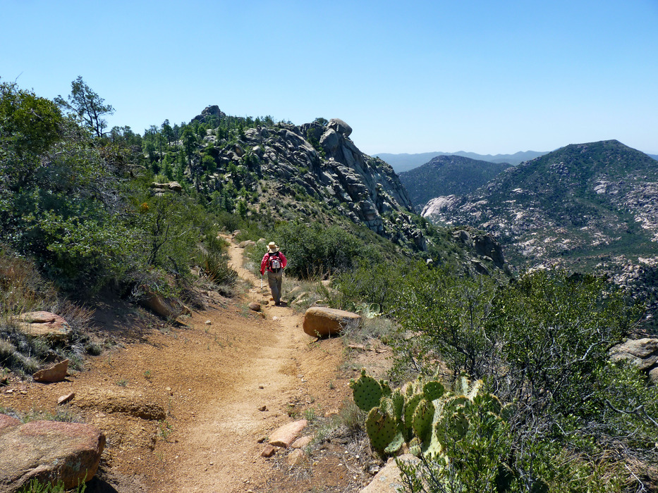 Making our way toward the valley on the top of the mountain. Ambika ahead, granite wall to her right ahead.