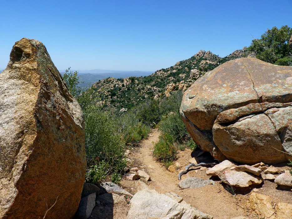 I love walking through the boulders; especially when there is a nice trail. You can also see the mountain to the west as we get closer to the saddle.