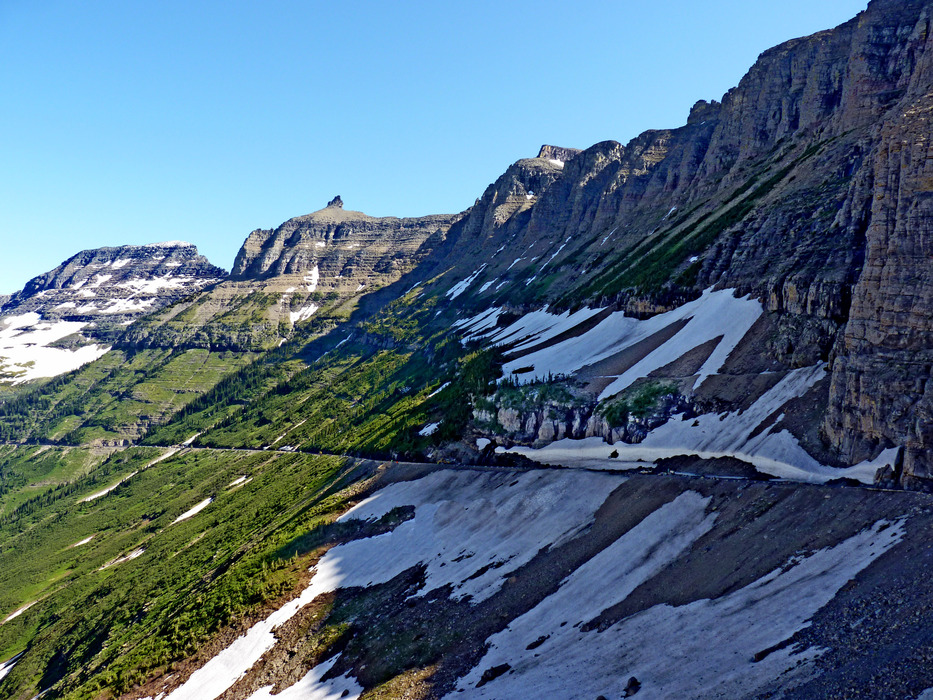 A view of the west side of the Continental Divide that holds the Highline Trail and Going to the Sun Road. The road had only opened on July 13th, latest open ever. The crews that open this road are incredible. This year they put up pics for us to see as they were making their way along the road as they start from both sides. It's really quite something.