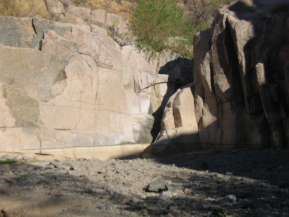 As I suspected, the falls are dry. There are a ton of bees at the base though, I think there is a hive near by.