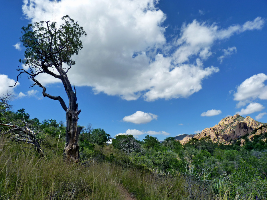 I just liked the feel of this scene with the tree and grasses and shrubbery leading to the sun lit mountain.