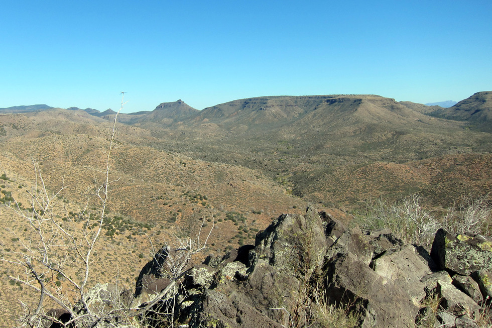 Dragonfly on a stick, Turret Pk, Mazatzal Pk in the distance (far right)