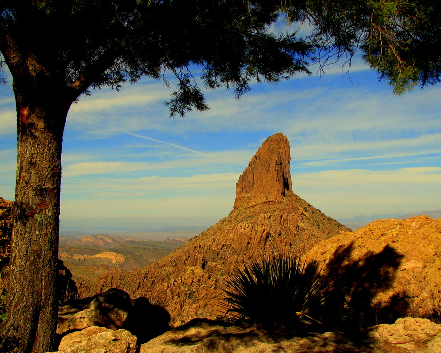 Framed by the Lone Pine Tree, the "Needle" looms in the near distance.