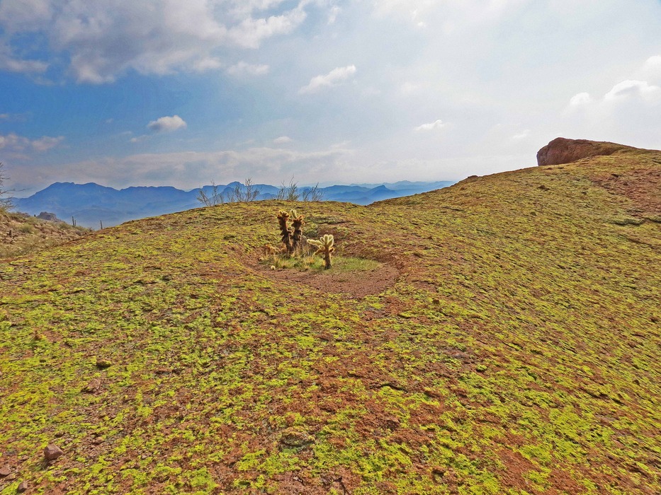 Cholla growing in a pothole in the surface of the rock.