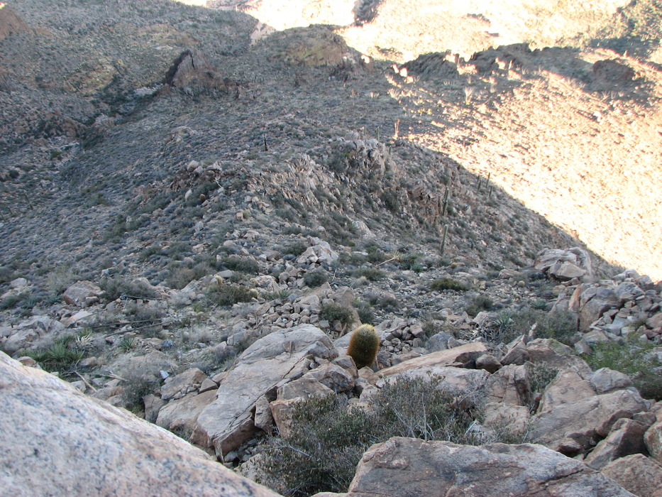 The route winds a little to the right then left on it's way to the rock outcrop waypoint