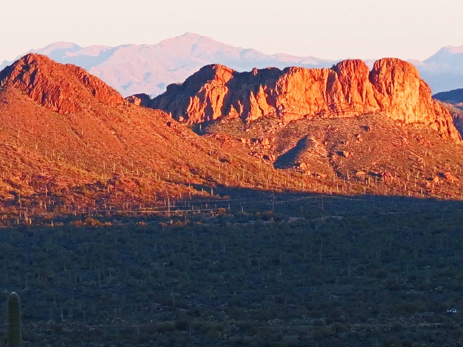 The Goldfield Mountains fully engulfed in the early morning sun.