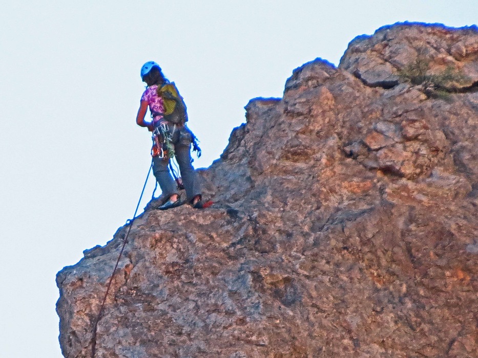 The lead climber finally makes it to the summit. Is there enough room for all six up there?