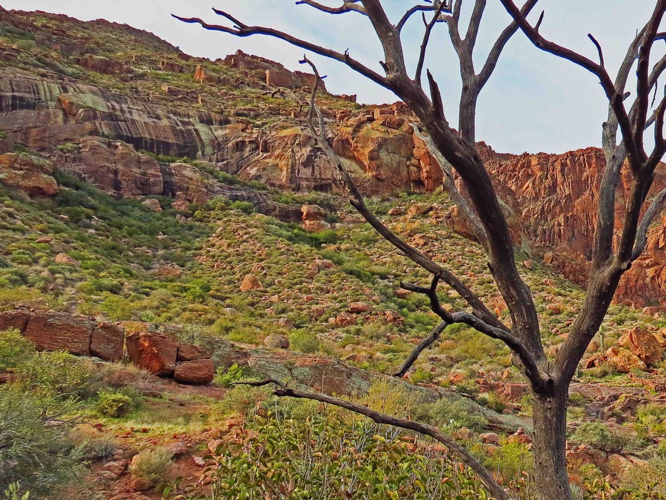 Looking back up towards the ridge at the falls above the falls. Can't wait to see this following a rain.