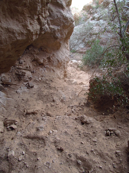 This is VERY steep and loose (60 degrees +/-). The photo does not show it. I actually started a small land slide when starting down this. The dust was shooting up the gully like a chimney. I had to wait for the dust to clear before proceeding. Crazy.