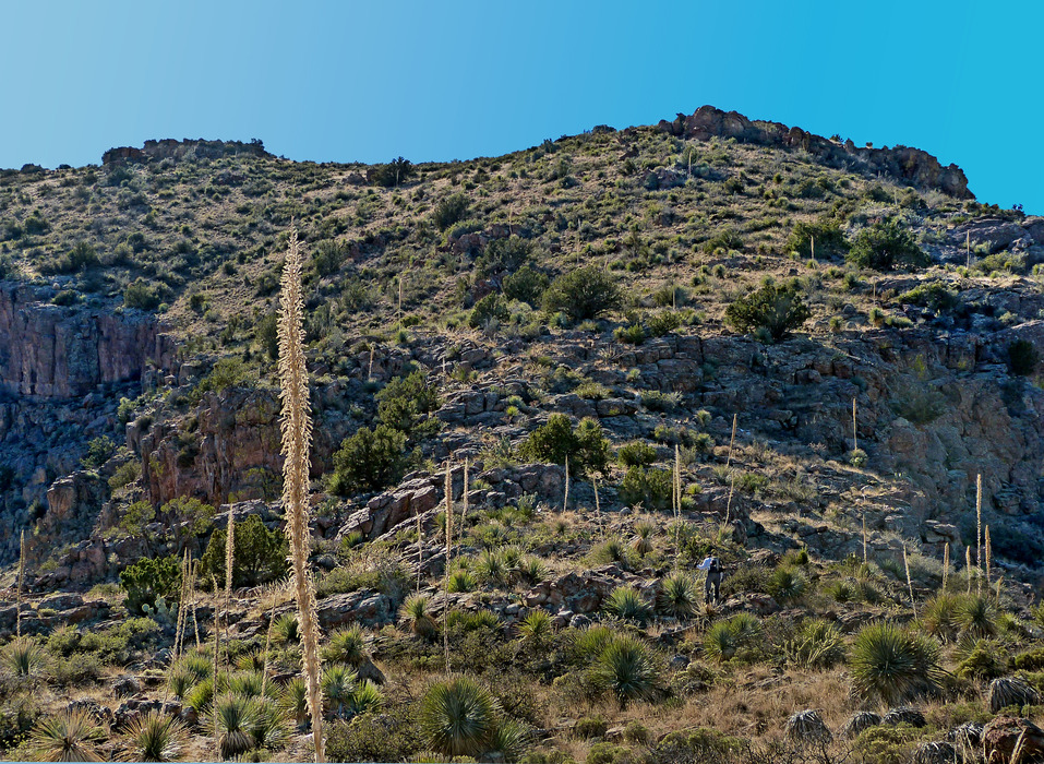 This is one of those, "try to find the hiker" pictures. I think Eric said this was 400 feet UP. I did get some video of this and as we made our way to the Summit: