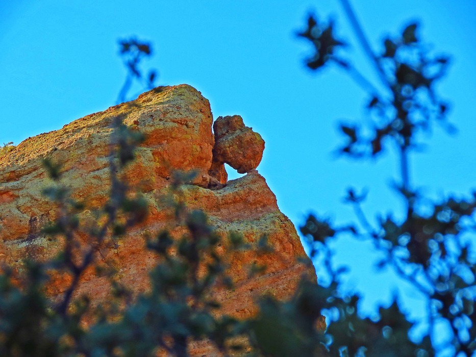 Way up on the top of a cliff, this once balancing rock, has lost its balance and now leans against the face of the cliff.
