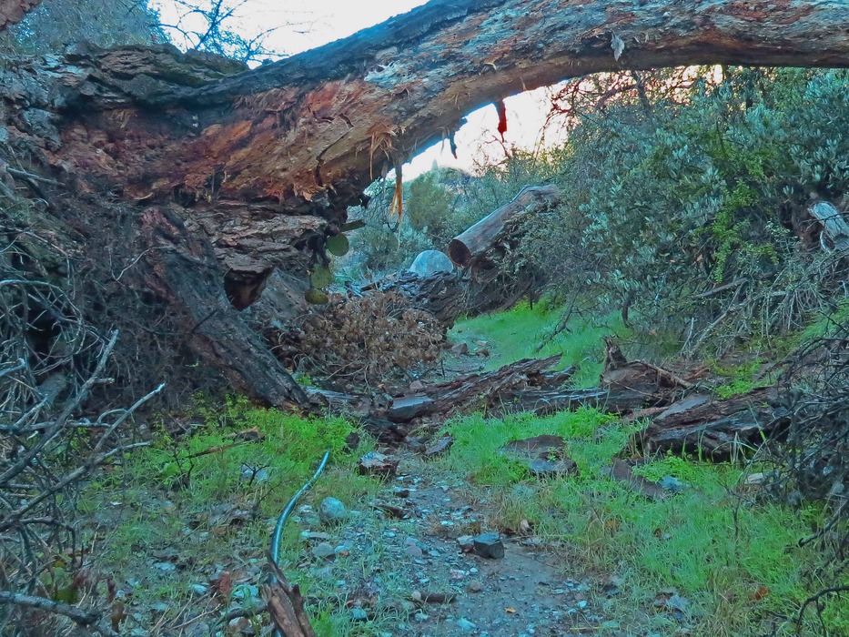 The path leading to the creek is paralleled by a PVC pipe from the spring.
