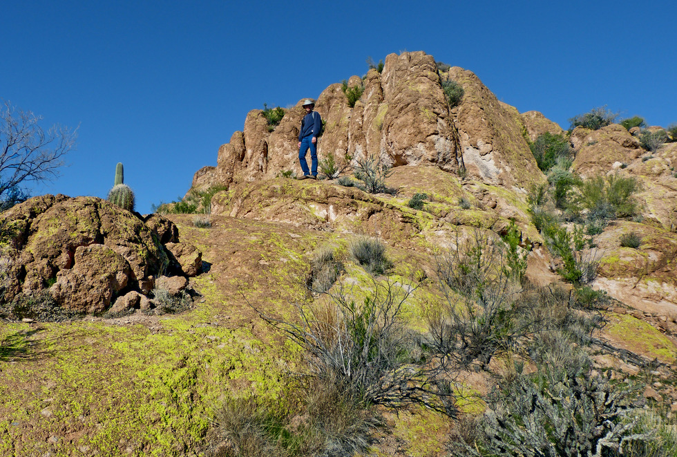 As usual, Eric leading the way as we climb up and out of the canyon. It's taking awhile as I was being distracted by the striking views.