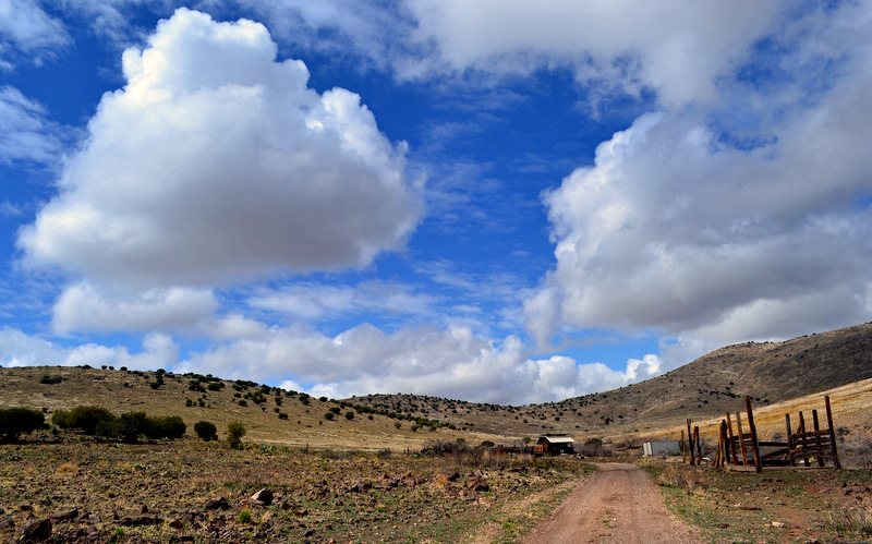 Starting up the service road that first travels through a small ranch.