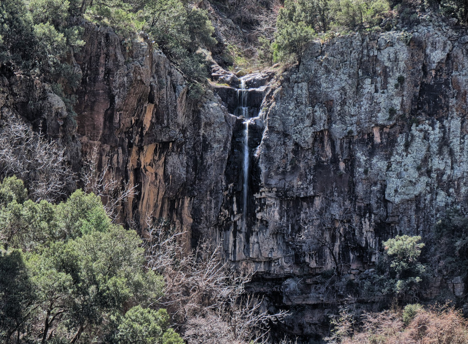 A zoomed-in view of the waterfall (love that 35X IS lens). I had not realized until taking this picture that there are at least 3 more falls just above the head of the large (approx 160 ft high) waterfall. You can't see these upper falls from the south wall or most of the north wall.