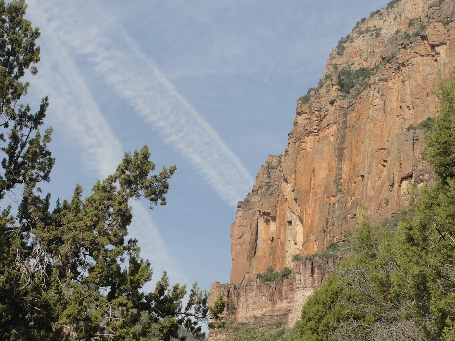 Contrails make for a nice back drop as modern man meets his ancient past!
