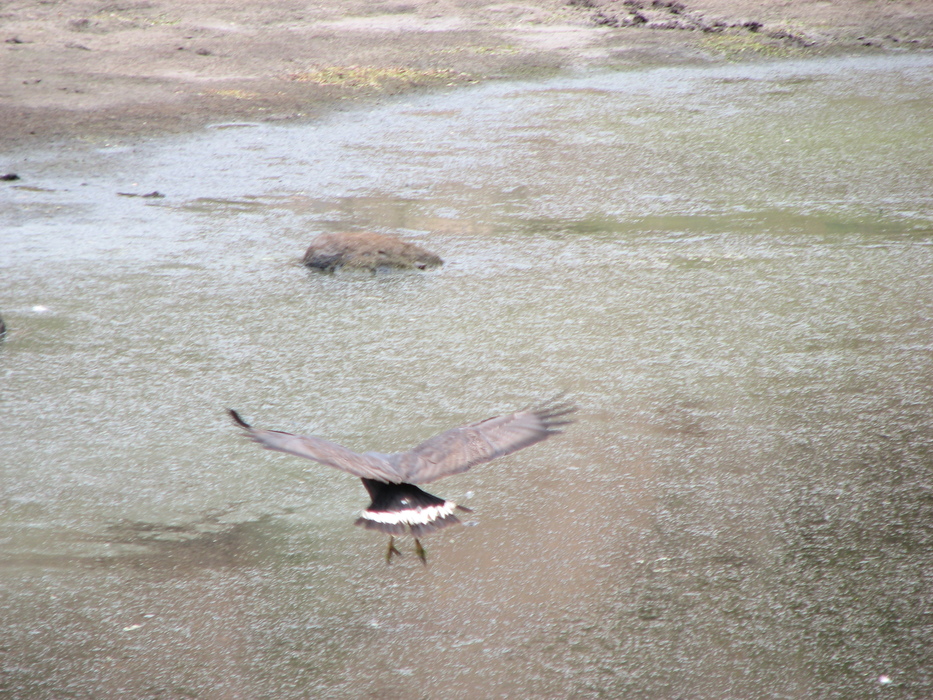 Zone-tailed Hawk in flight. I was adjusting the zoom when it abruptly took off, thus the blurry image.