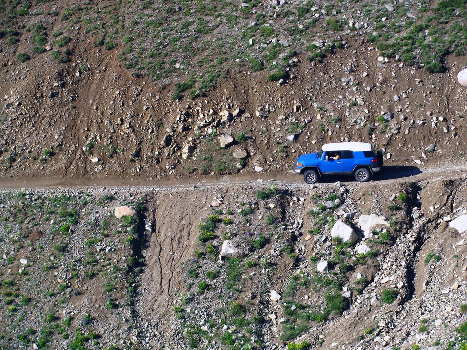 Brandon and his FJ heading down off of Mount Antero